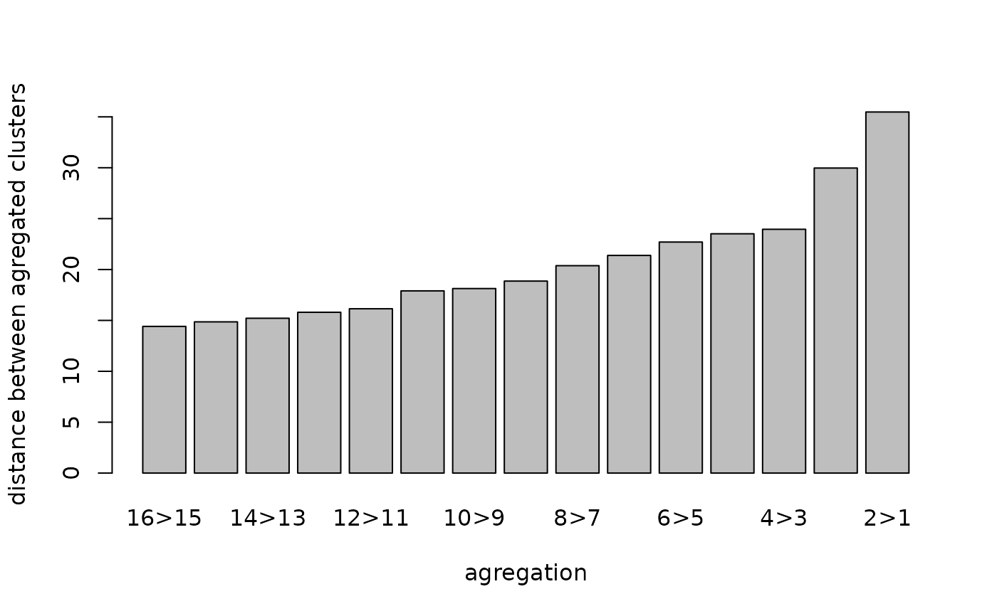 ahc_plots(ahc, distance = NULL, max.cl = 20, type = "dist")object of class hclust or agnes